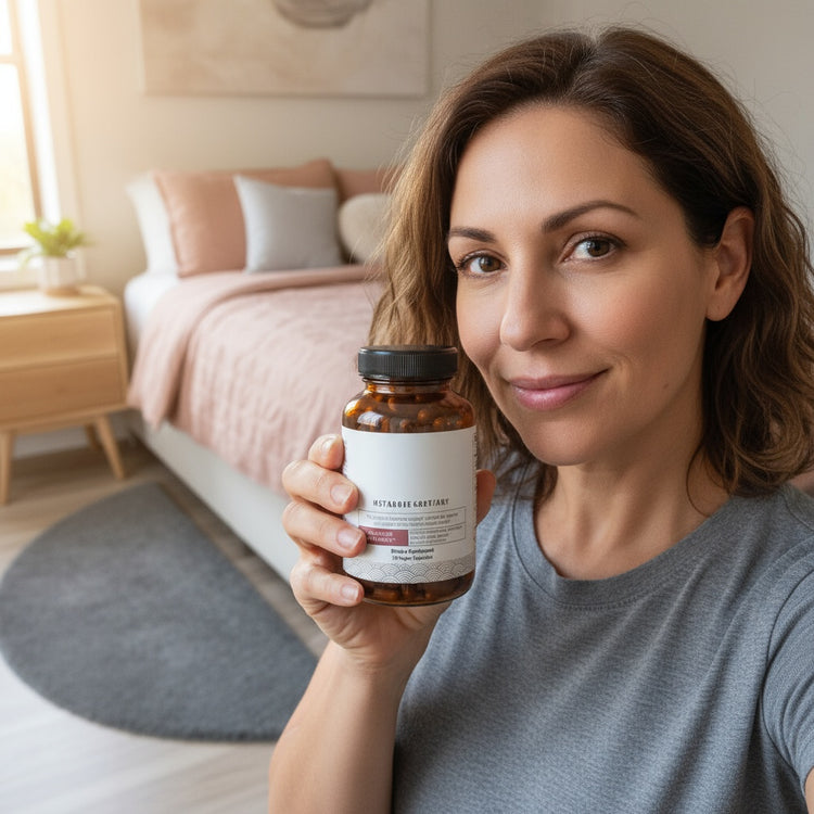 A premium blend of adaptogens and botanicals designed to support perimenopause and menopause symptoms like hot flashes, mood swings, bloating, and low libido.